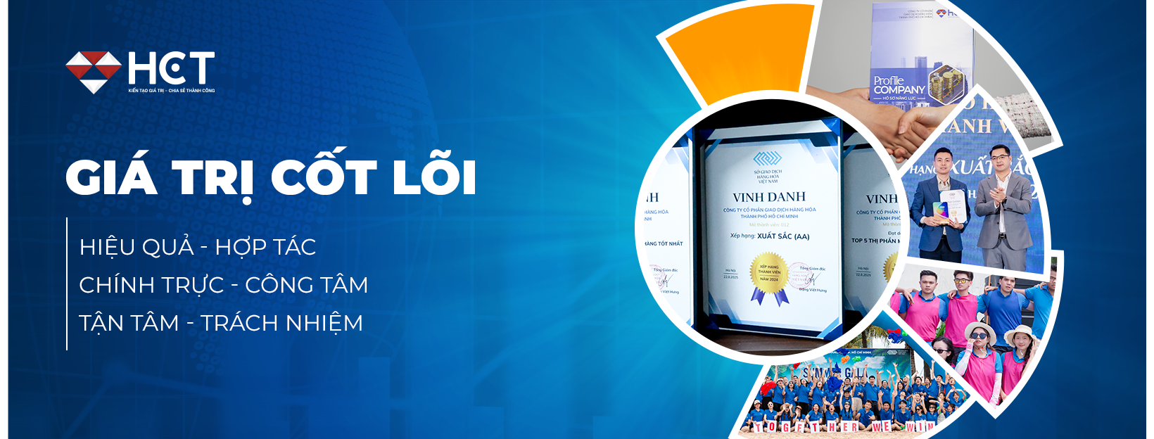 Công ty Cổ phần Giao dịch Hàng hóa Thành phố Hồ Chí Minh (HCT) là thành viên kinh doanh TOP ĐẦU của Sở Giao dịch Hàng Hóa Việt Nam (MXV), được Bộ Công Thương cấp phép và bảo lãnh về hoạt động Giao dịch Hàng hóa.